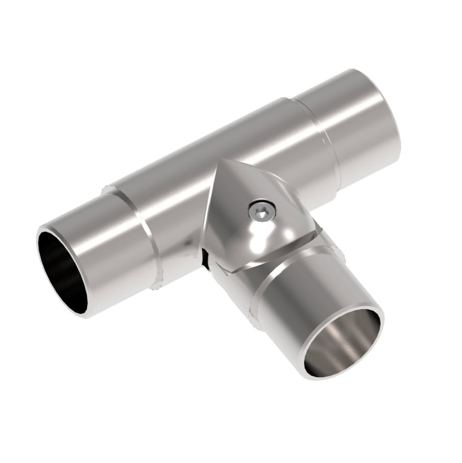 Käsipuu hoidja/ühendus “T” reguleeritav kaldenurk, torule 42,4/2mm, AISI304, Satiin