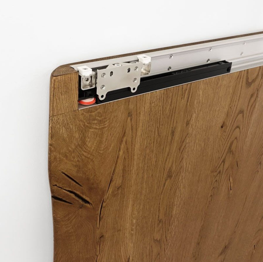 Arcana siinisüsteem on peidetud liugukse lahendus, kus siin ja rullikud jäävad ukse taha silma alt peitu. See loob minimalistliku ja puhta visuaali, ilma nähtavate siinikinnituseta. Komplekt on mõeldud ühe puidust või paneelukse jaoks, mille paksus on 42–50 mm ja kaal kuni 60 kg.