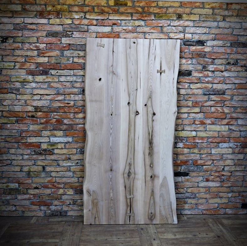 Uks on valmistatud täissaarepuidust ning selle loomulik välimus on teadlikult säilitatud. Nähtavad praod, süvendid, värvimuutused ja ebaühtlased servad on osa disainist, mitte defektid. Tänu sobivale liimimistehnoloogiale ja hoolikalt valitud materjalile moodustab uks visuaalselt ühtse ja massiivse plaadi.