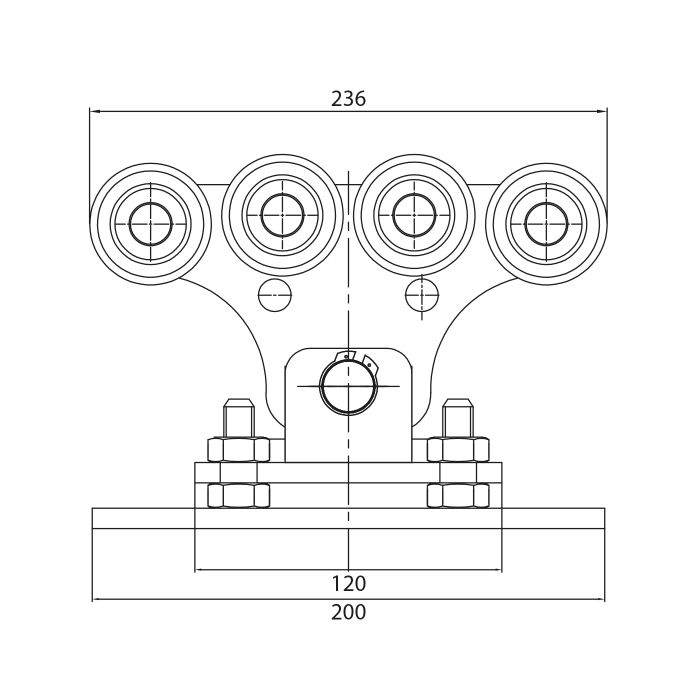 See liugvärava rullikukomplekt on mõeldud konsool-liugväravatele, kus väravatiib liigub juhsiinil ilma maapinnale toetuva siinita. Komplekti südameks on kaks kanderullikut, milles paikneb kokku 8 plastikrullikut kahel tasapinnal. Selline lahendus jaotab värava kaalu ühtlaselt ning vähendab iga üksiku rulliku koormust.