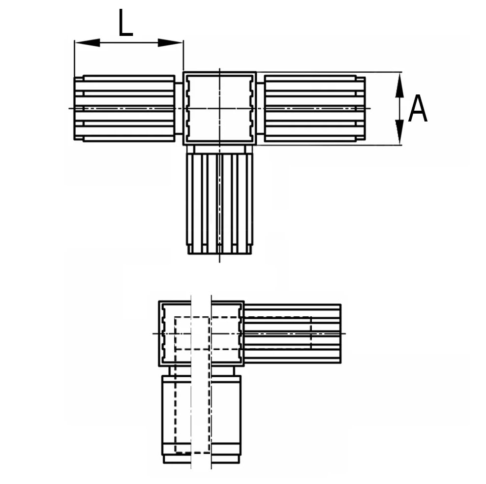 → kolmemõõtmeline T-liide kandilistele torudele