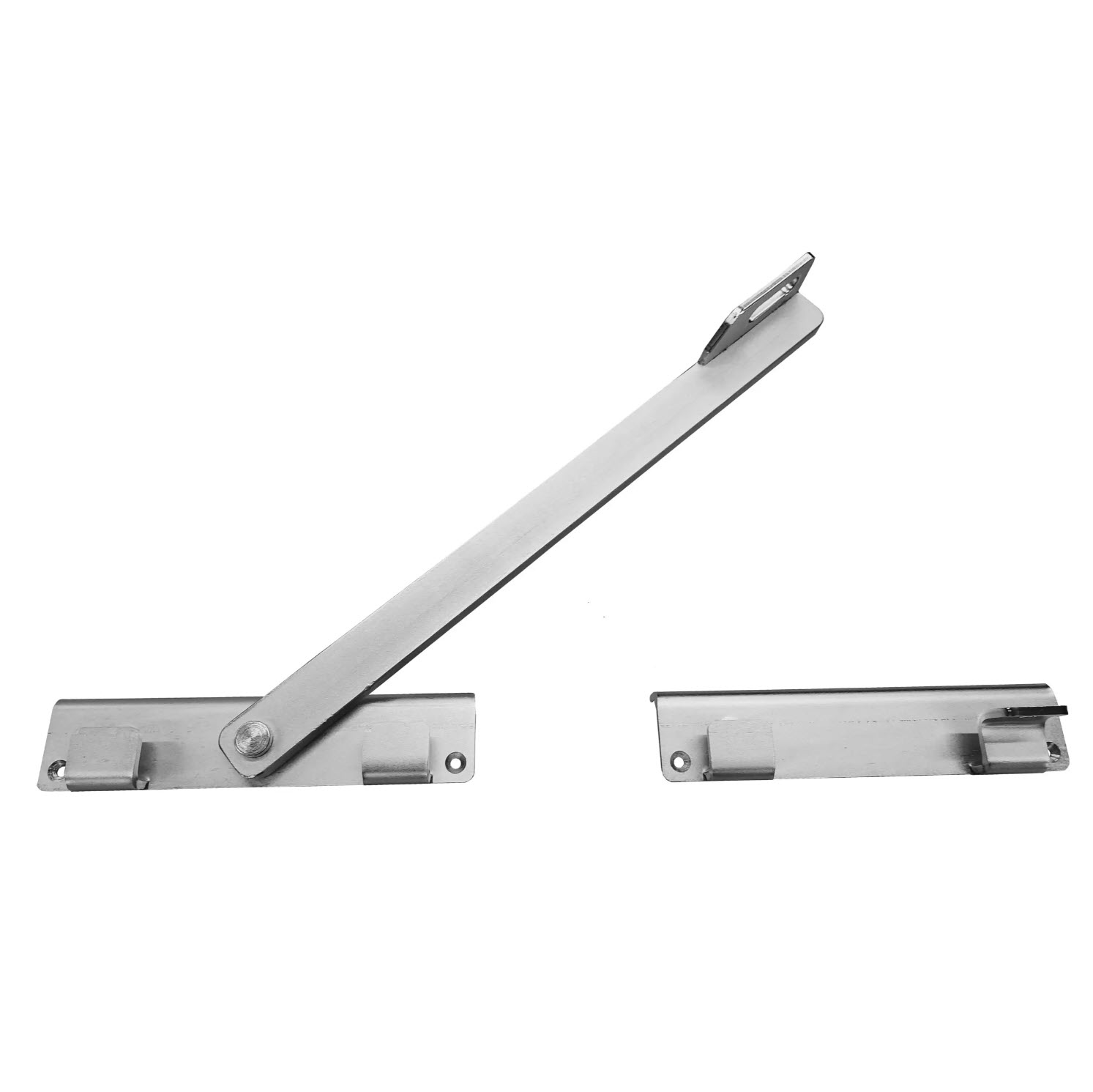 Tugev ja töökindel tiibvärava ülemine sulgur vasakukäelisele avamisele. Konstruktsioon on nurgaga, mis tagab sujuva liikumise ja stabiilse sulgumise. Komplektis on tabaluku kasutamise võimalus – aasad võimaldavad värava turvaliselt tabalukuga lukustada.