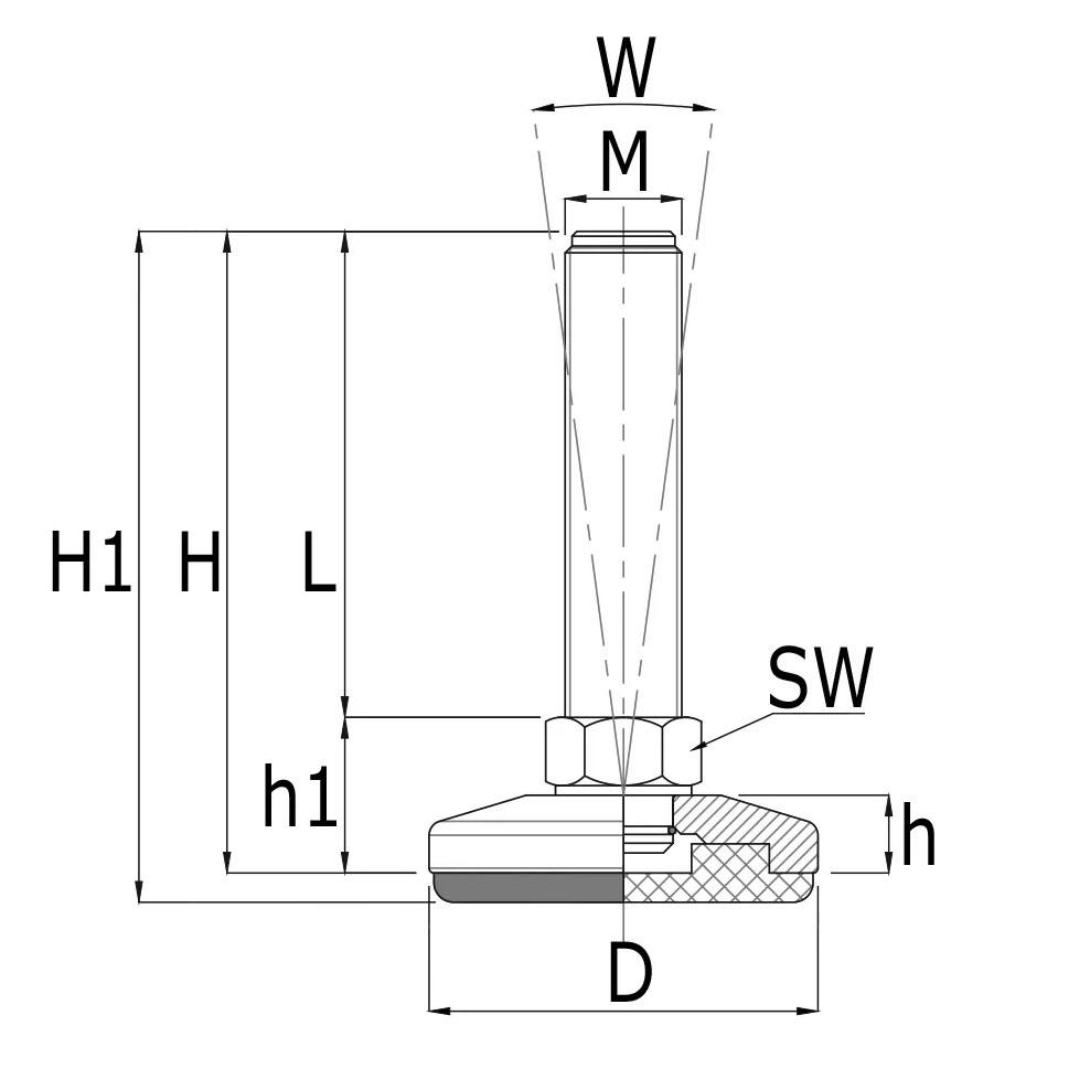 Reguleeritav tugijalg Ø40 mm M8 x 25 aitab tagada stabiilsuse ja vähendab vibratsiooni, mis pikendab seadmete eluiga ja parandab tööohutust.
