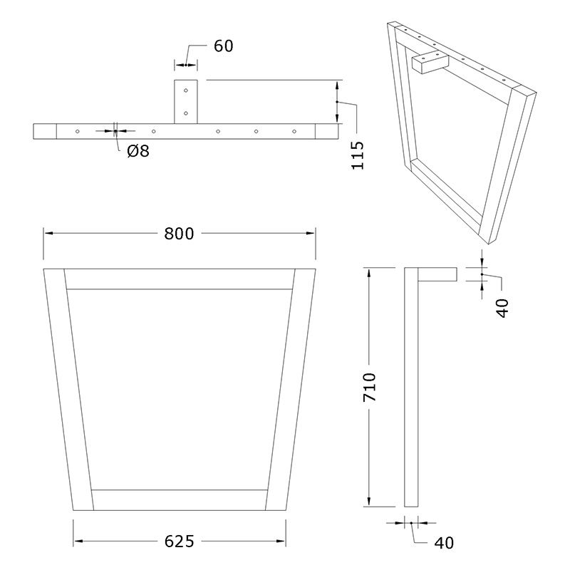 TRAPEZ laua jala trapetsikujuline vorm lisab tootele visuaalset iseloomu ja eristuvust, säilitades samal ajal stabiilse konstruktsiooni. See kuju annab jalale klassikalise, kuid samas kaasaegse ilme, mistõttu sobib see nii traditsioonilistesse kui ka modernsetesse interjööridesse.