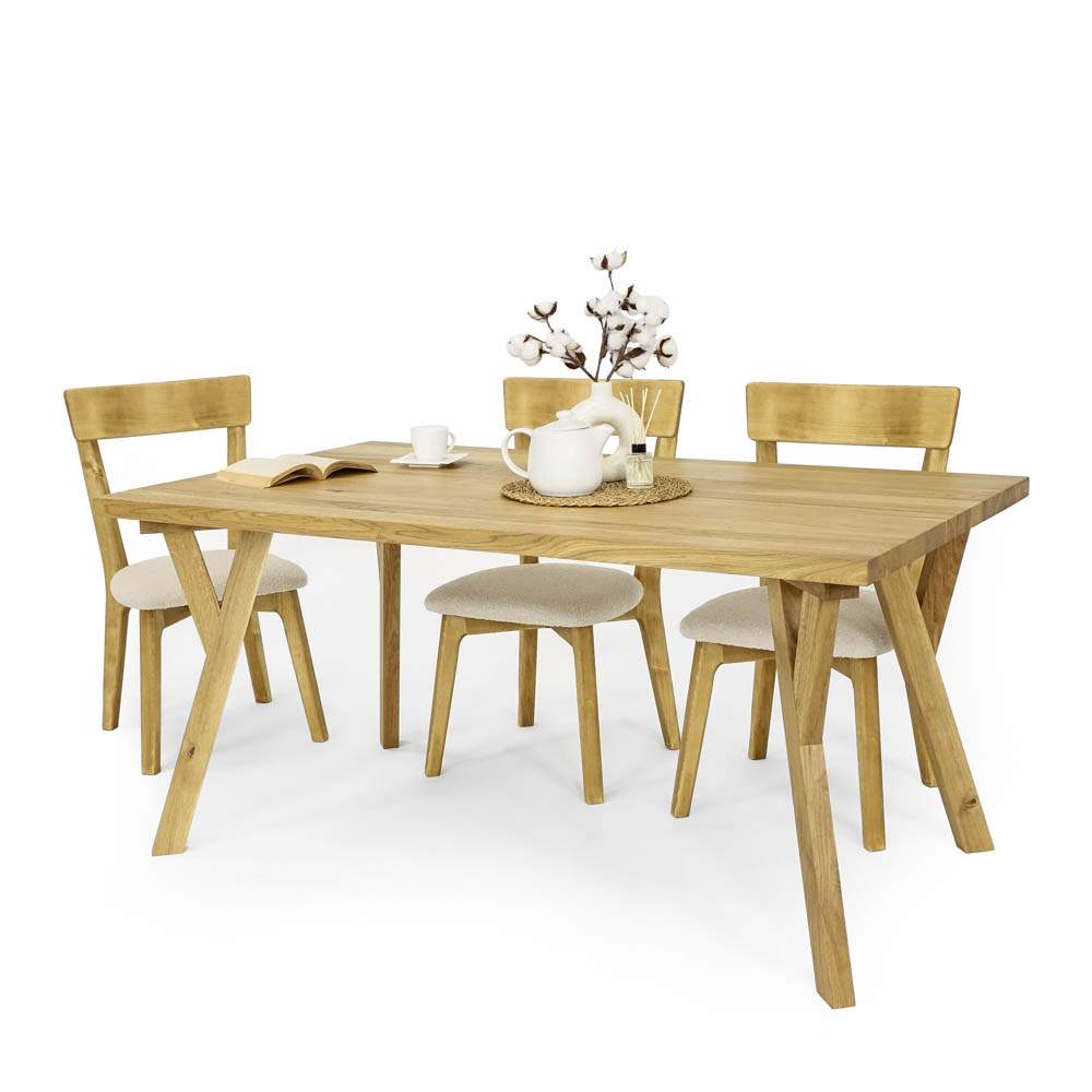 Y-kujuline disain annab laua jalale modernse ja pilkupüüdva välimuse, säilitades samal ajal vajaliku stabiilsuse. See kuju sobitub hästi nii kaasaegsetesse, traditsioonilistesse kui ka rustic-modern interjööridesse. Tulemuseks on laud, mis mõjub kergelt, kuid on konstruktsioonilt kindel ja usaldusväärne.