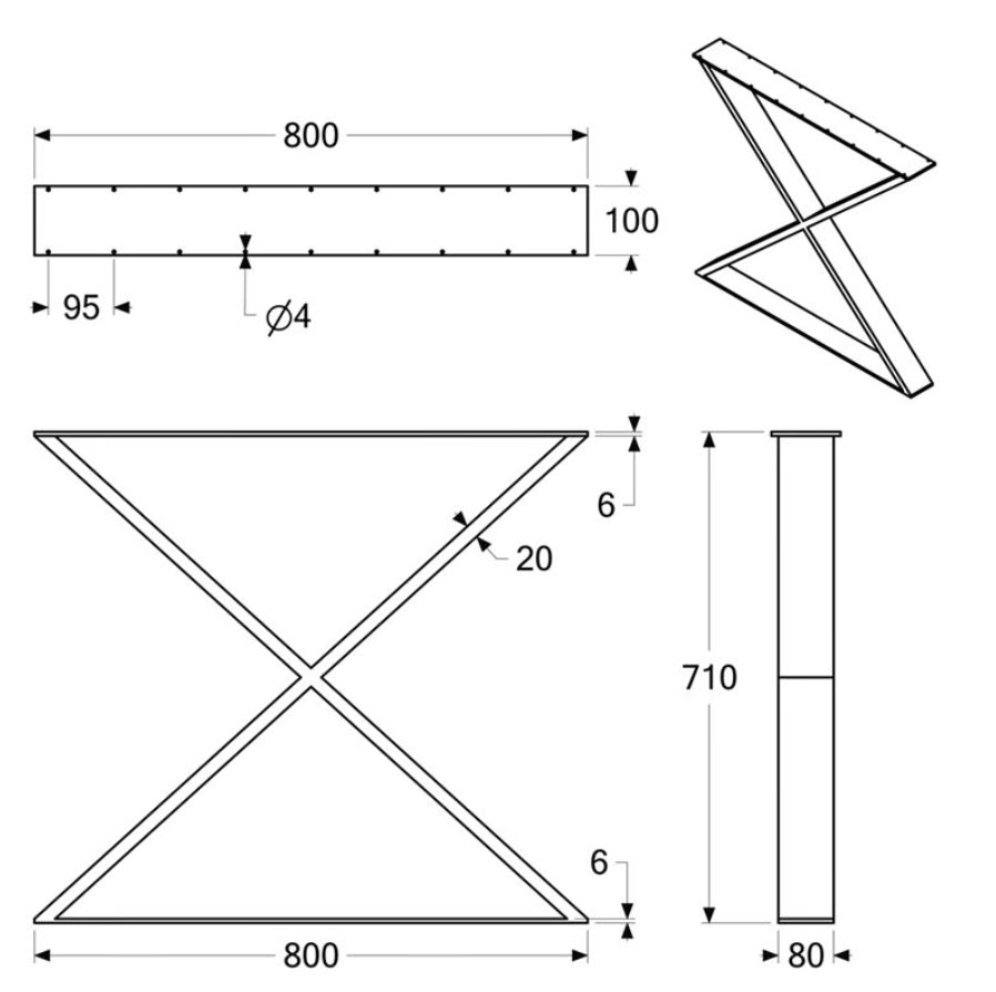 Metallist jalg TÜÜP X, H450 * 800mm, lakitud metall